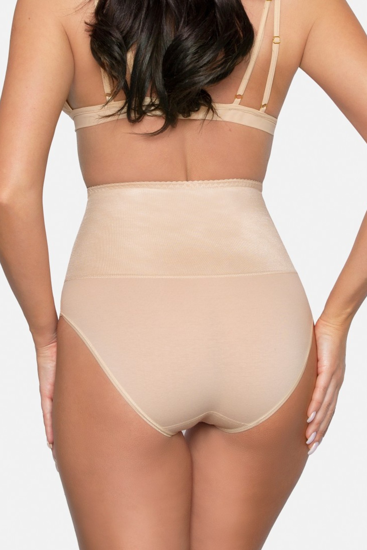 Beautiful high-waisted corrective brief made with strong polyamide knit fabric. Creates a bell that shapes the belly and hips. Lower part of panties made of 92% cotton 8% elastane.