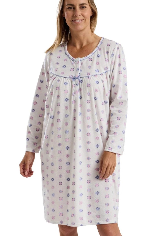 Ladies Thermal Brushed Floral 40" Microfleece Long Sleeve Nightdress Product Code: S-45728