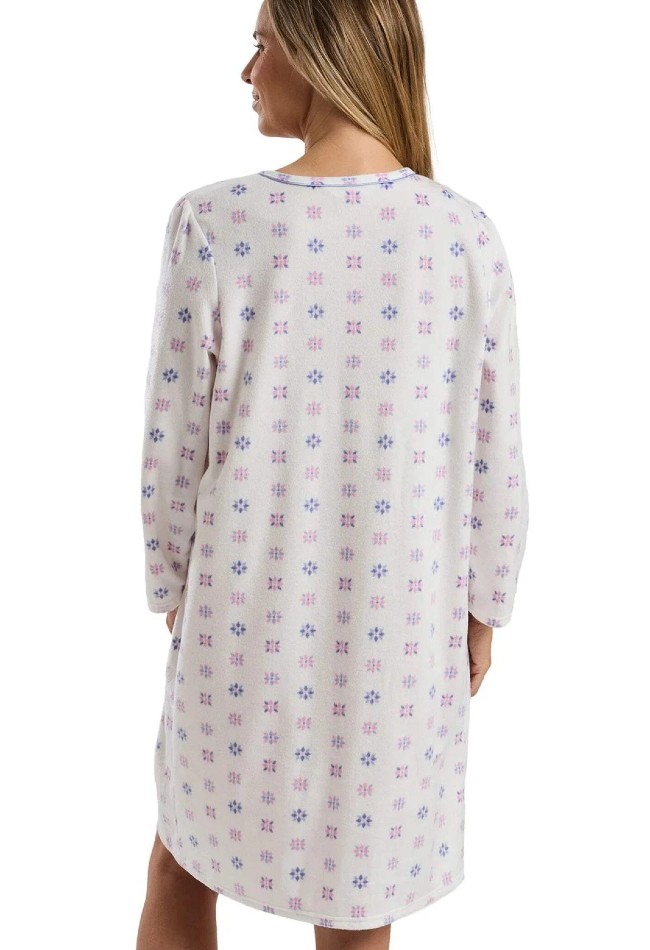 Ladies Thermal Brushed Floral 40" Microfleece Long Sleeve Nightdress