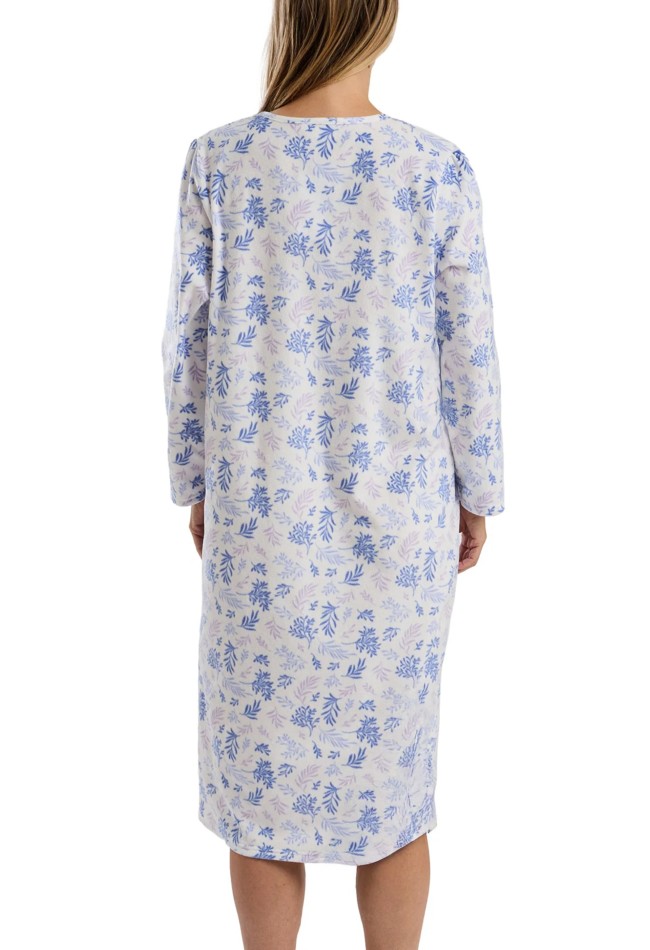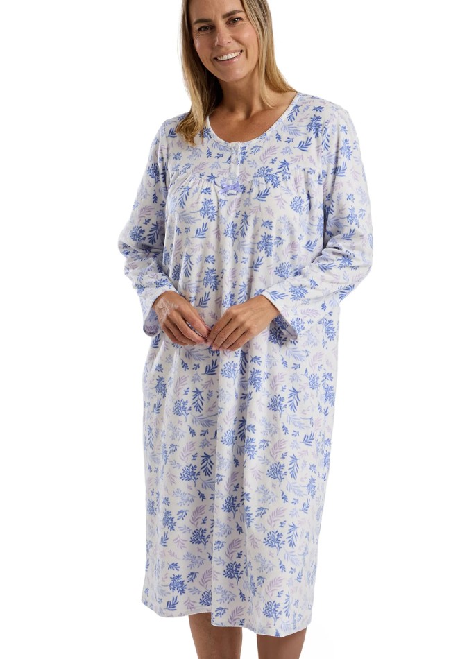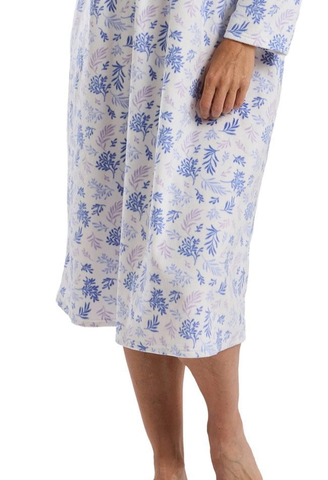 Ladies Thermal Brushed Leaf Print 40" Microfleece Long Sleeve Nightdress