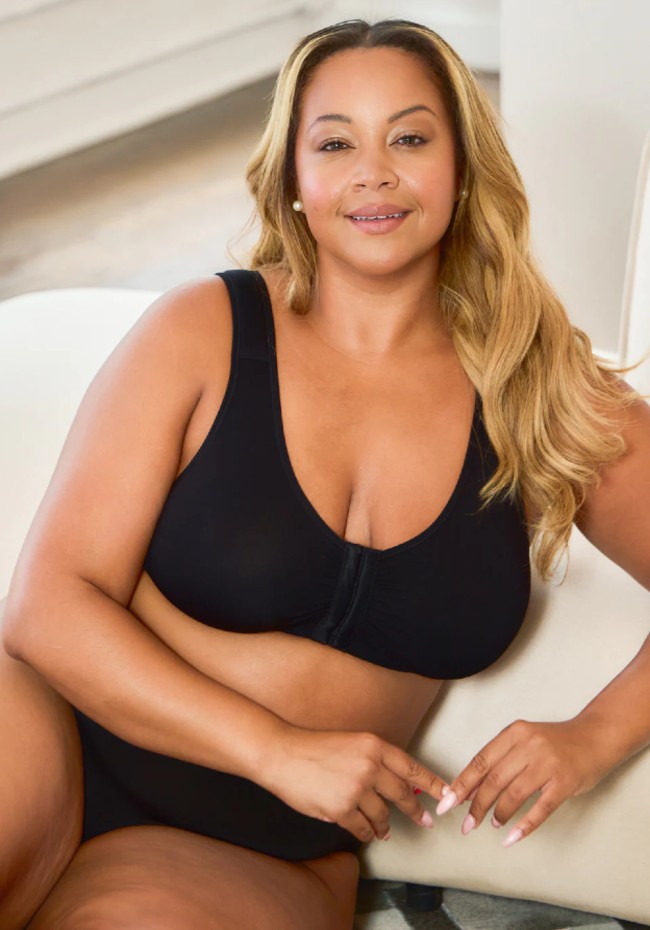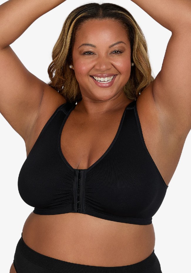 Laurel Seamless Comfort Front Closure Wireless Bra by Leading Lady Black