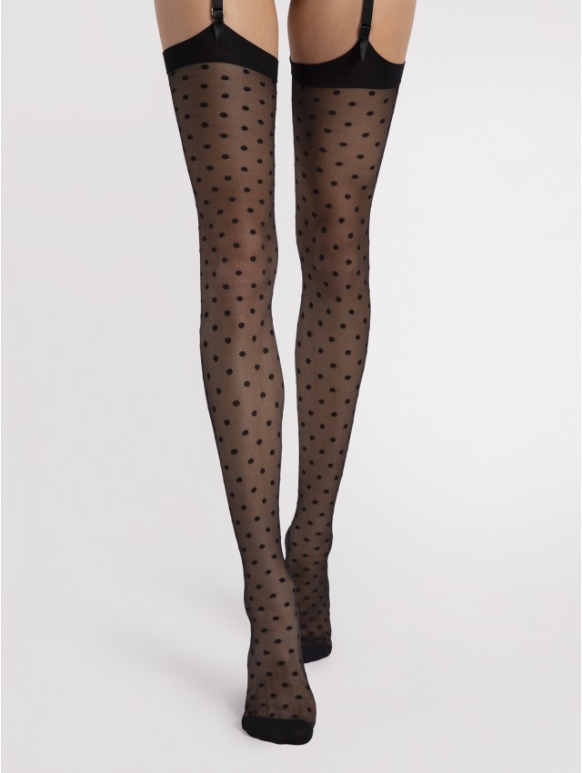 Dressing this sensual stockings and let magic happens, edgy and period retro dots pattern with invisibly reinforced toe portion.