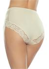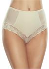 Tightening and figure correcting brief made of soft control microfiber, high waist, front lined with mesh to enhance the correction of the abdominal line. Legs decorated with floral lace.
