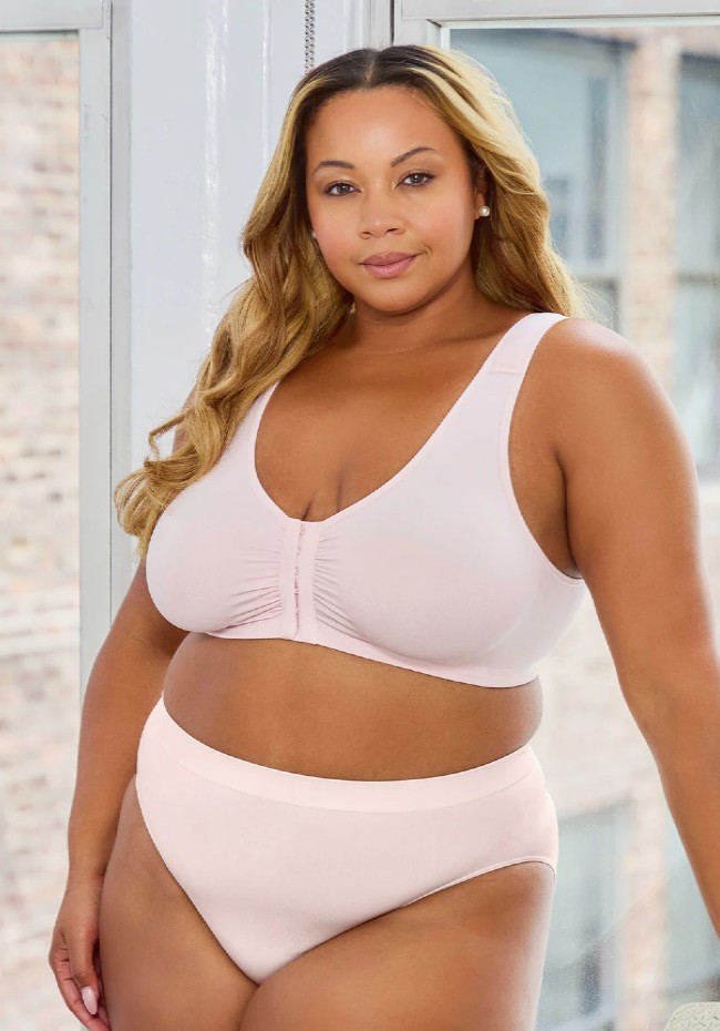 Laurel Seamless Comfort Front Closure Wireless Bra by Leading Lady Pink