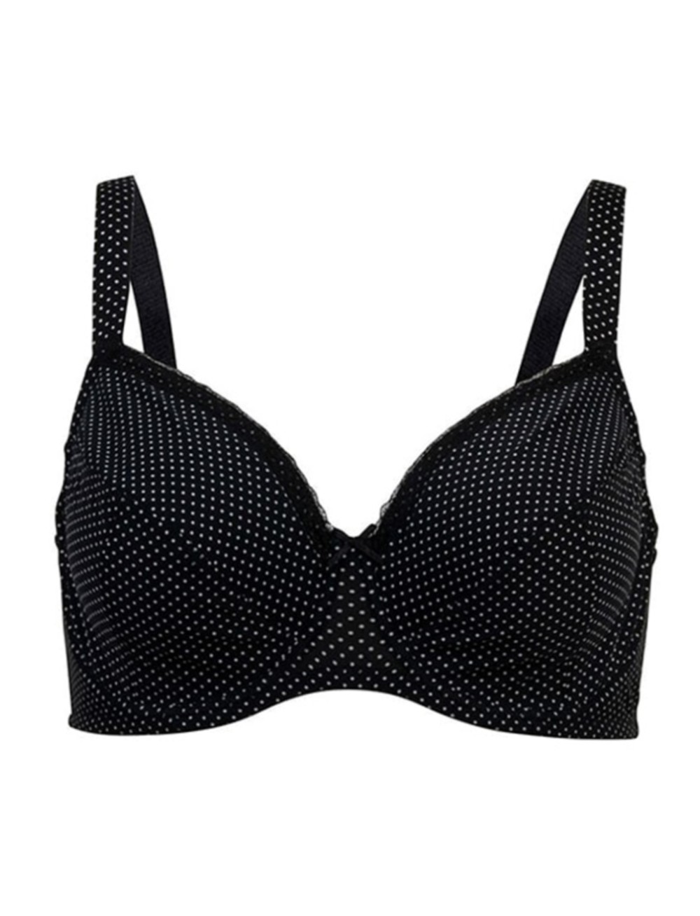 This polka dots bra has strong underwire and forever lasting polka dots print all over cup. Padded straps.