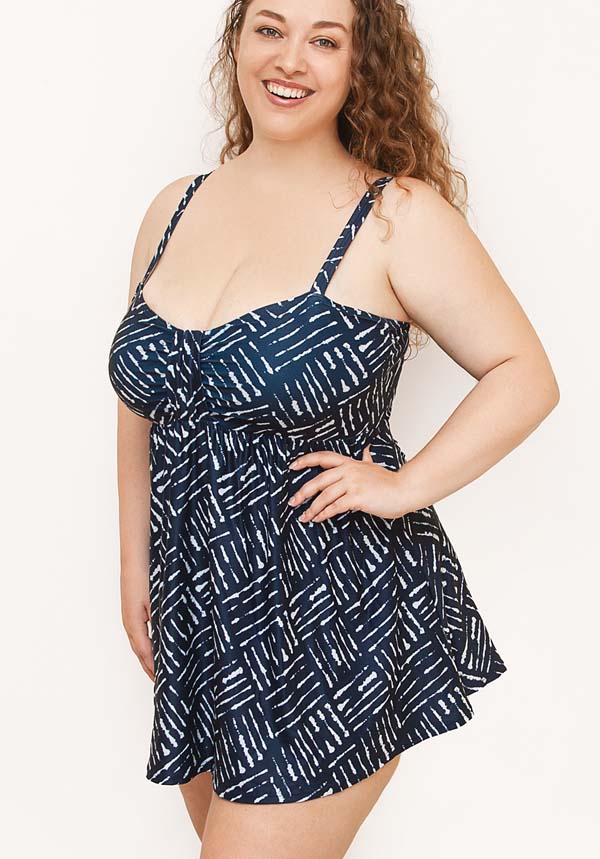 Waffle Print Swimdress with Wirefree Soft Bra D-E