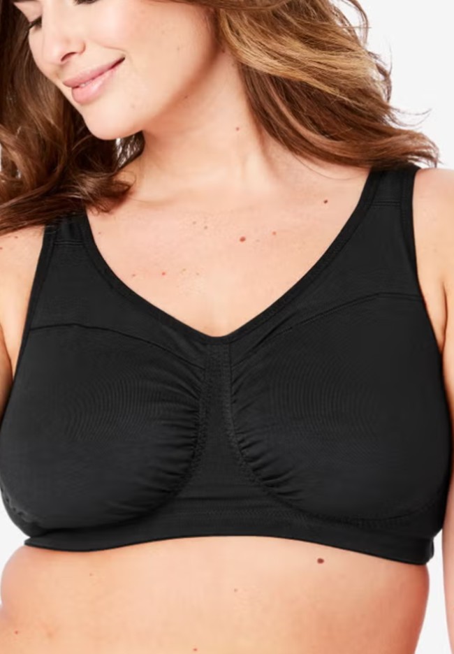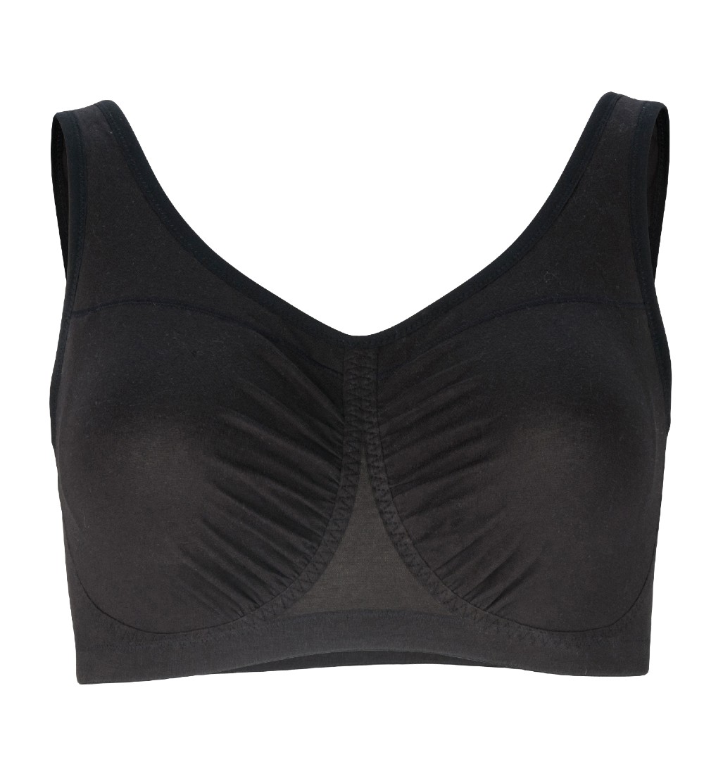 This cotton rich wirefree bra offers support and durability. Wirefree with camisole straps(no slipping of straps). There is no underwire. Double-layers cotton fabric cups and reinforced with strong elastic, fabric cups are sewn into the style giving you additional shape.